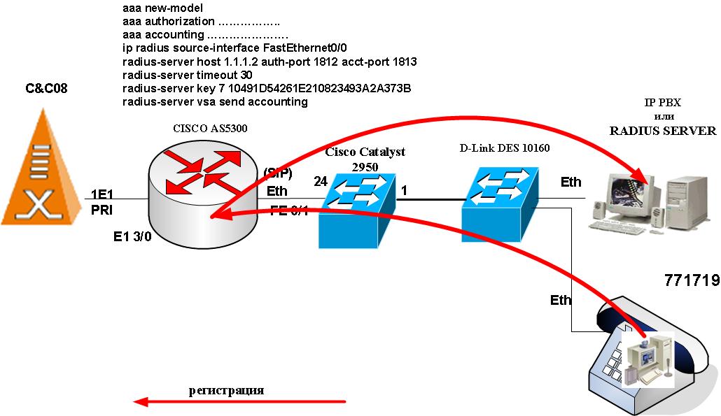 Я так понимаю, что на as5350 я прописываю aaa....... где и указываю адрес радиус-сервера., а радиус-сервер это некоторый компьютер с установленным freeradius.